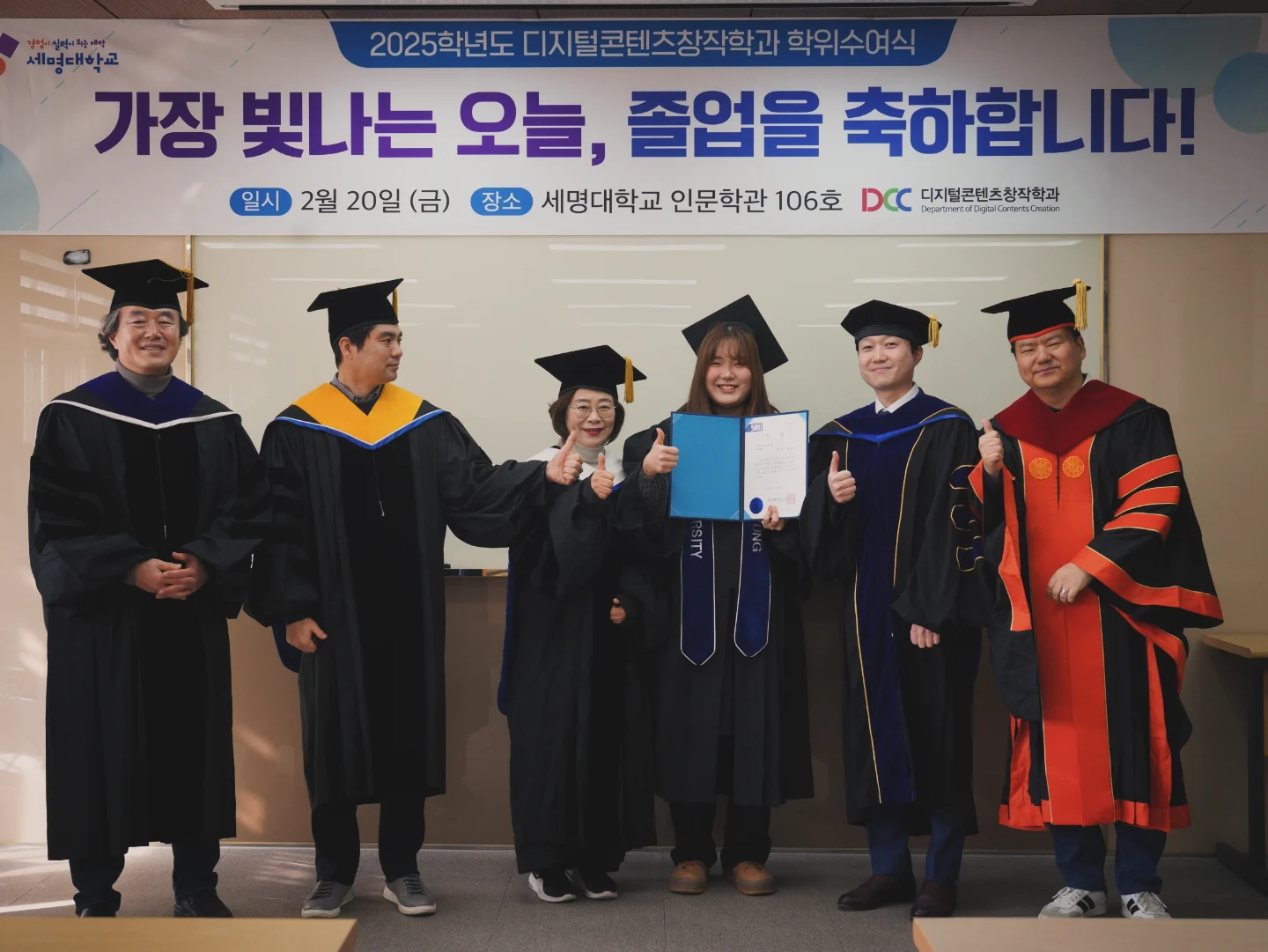 본문 시작 홈으로 MCC News 학과소개 교수소개 학과과정 MCC News MCC SNS 홈페이지가이드 학과 및 재학생 학과 및 재학생 교수 및 졸업생 미디어 정보통 학과 및 재학생 페이스북 트위터 프린트 2025학년도 디지털콘텐츠창작학과 학위수여식 미디어콘텐츠창작학과 387 2026-03-02 🎓디지털콘텐츠창작학과 학위수여식🎓 2025년을 끝으로 졸업하시는 선배님들의 학위수여식이 2026년 2월 20일 금요일 인문학관에서 진행되었습니다! 이제 인생의 첫 페이지를 넘겨 새롭고 무궁무진한 꿈을 써내려갈 멋진 선배님들의 졸업을 진심으로 축하드리며, 앞으로의 모든 날이 소설처럼 아름답기를, 저희 후배들이 열심히 응원하겠습니다!🎉😊 목록 이전미디어콘텐츠창작학과 신입생 꿈 설계학기 2일차.zip 담당부서 : 미디어콘텐츠창작학과 담당자 : - 연락처 : 043-649-1741 최종수정일 : 2024-10-26 만족도조사 만족도 조사 이 페이지에서 제공하는 정보에 대하여 만족하시나요? 매우만족 만족 보통 불만족 매우불만족