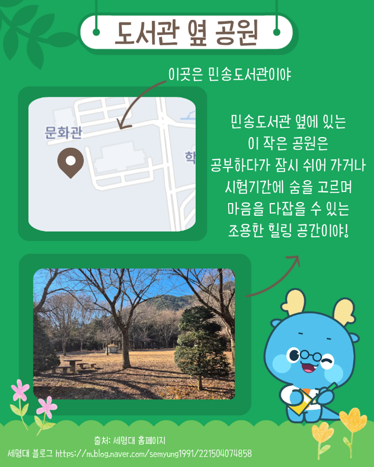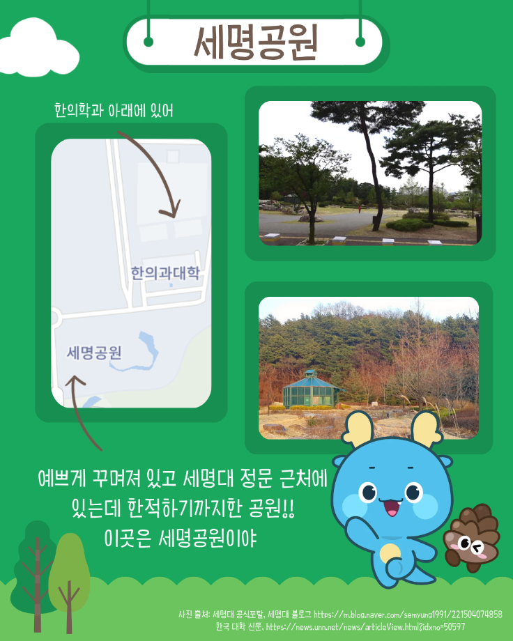 본문 시작 홈으로 MCC News 학과소개 교수소개 학과과정 MCC News MCC SNS 홈페이지가이드 미디어 정보통 학과 및 재학생 교수 및 졸업생 미디어 정보통 미디어 정보통 페이스북 트위터 프린트 세명대의 숨겨진 장소를 알려줄게! 미디어콘텐츠창작학과 236 2026-01-19 자세한 내용은 세명대학교 블로그에서 확인하실 수 있습니다. 목록 이전끄라몽 84회 CAT(고양이) 디자인 공모전 담당부서 : 미디어콘텐츠창작학과 담당자 : - 연락처 : 043-649-1741 최종수정일 : 2024-10-26 만족도조사 만족도 조사 이 페이지에서 제공하는 정보에 대하여 만족하시나요? 매우만족 만족 보통 불만족 매우불만족